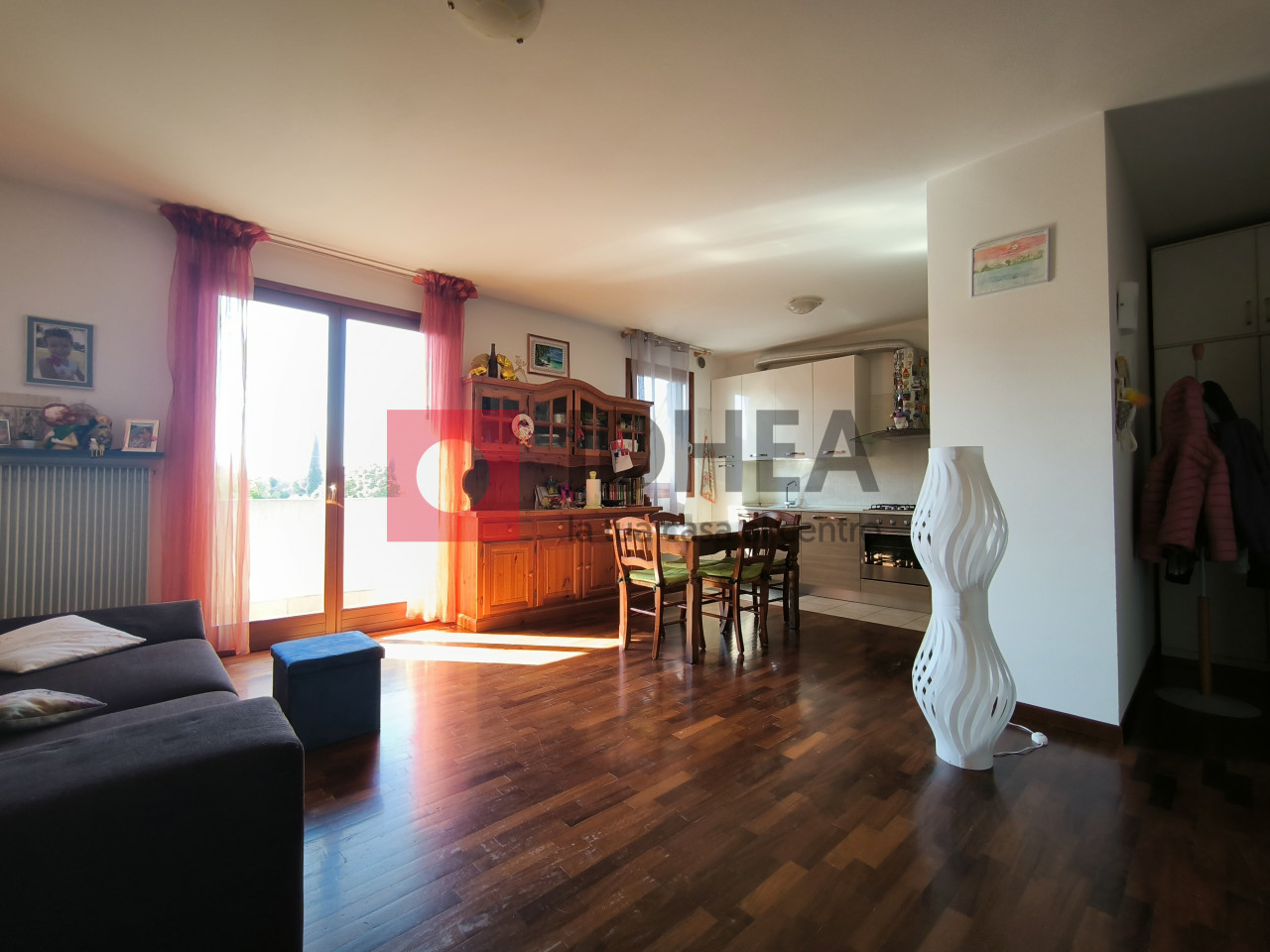 L'immobile si presenta con spazi ben distribuiti, ed è così composto: ingresso su luminoso soggiorno con angolo cottura per complessivi 34 mq con affaccio su terrazzo panoramico, comodo disimpegno con armadiatura, camera matrimoniale di c.a. 15 mq, camera singola e bagno finestrato con doccia.