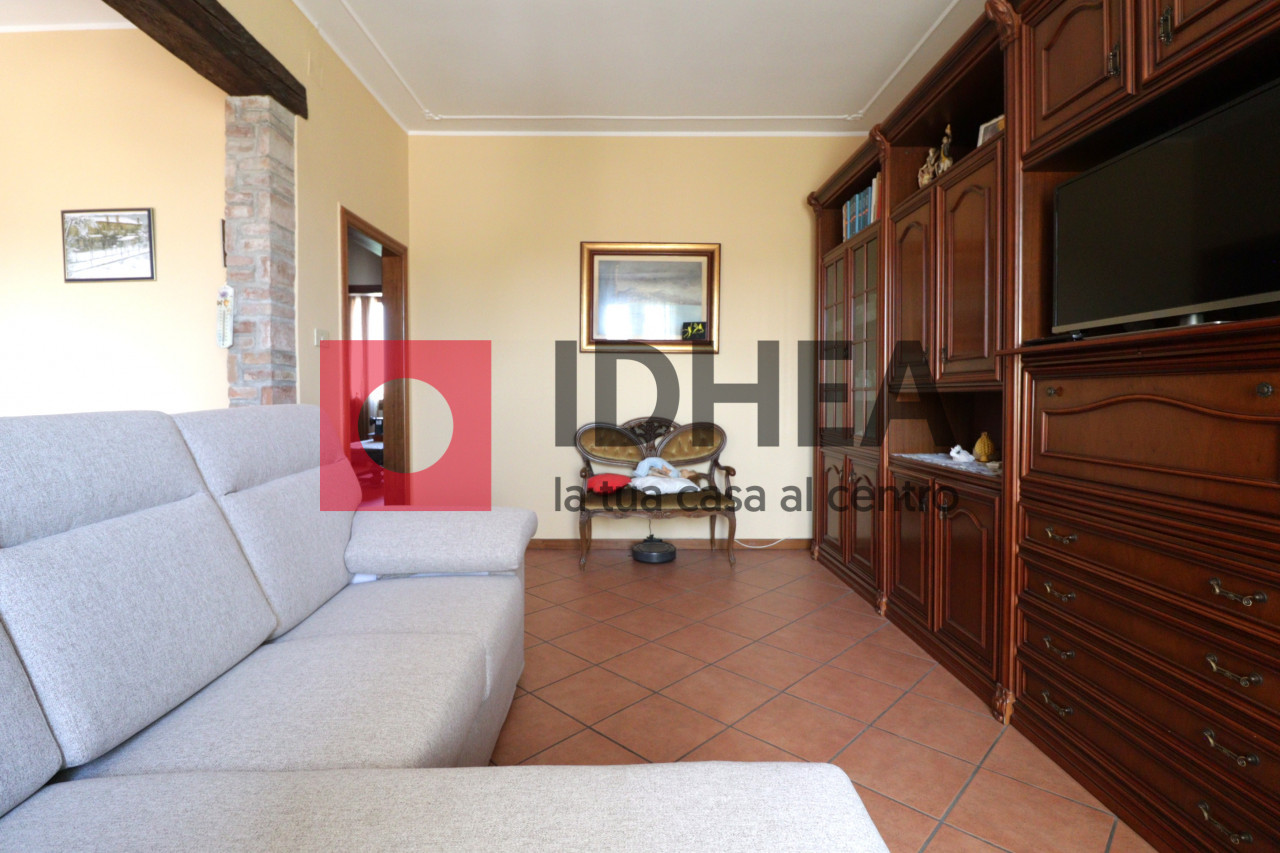 La disposizione degli spazi interni dell'immobile è la seguente: ingresso sulla zona giorno di circa 33 mq composta da cucina con vista sul soggiorno e con uscita su terrazzo/veranda; tramite comodo disimpegno vi è la zona notte con una stanza di 11.17 mq, camera matrimoniale di 18.60 mq, altra camera matrimoniale di 15 mq con armadio a muro, bagno finestrato con doccia ed infine un ripostiglio che può essere utilizzato da cabina armadio.