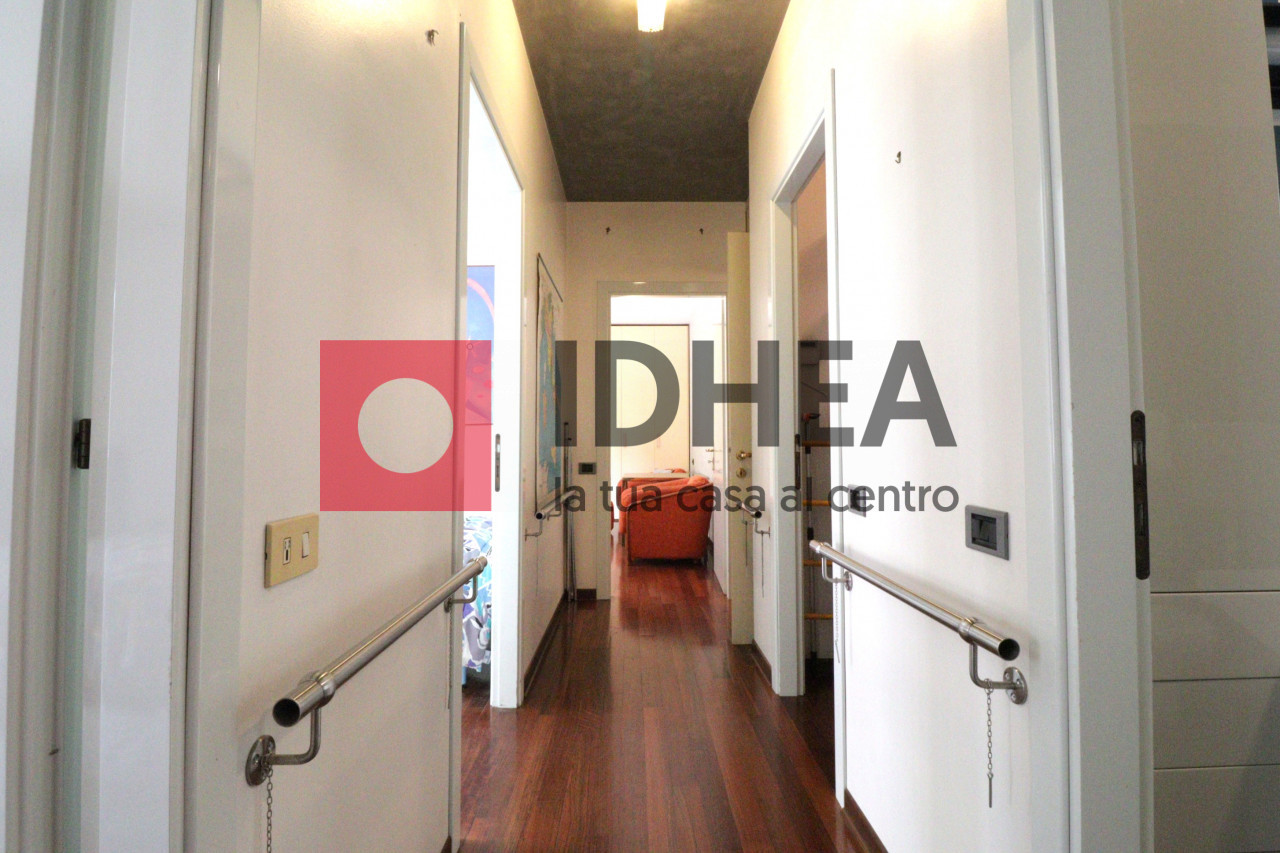 L'appartamento è interamente pavimentato in parquet, spatolato sul soffitto e in stucco veneziano alle pareti.