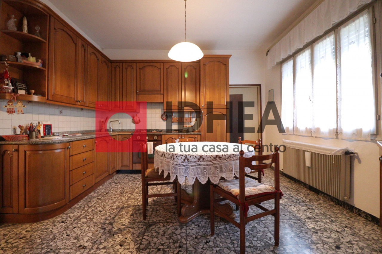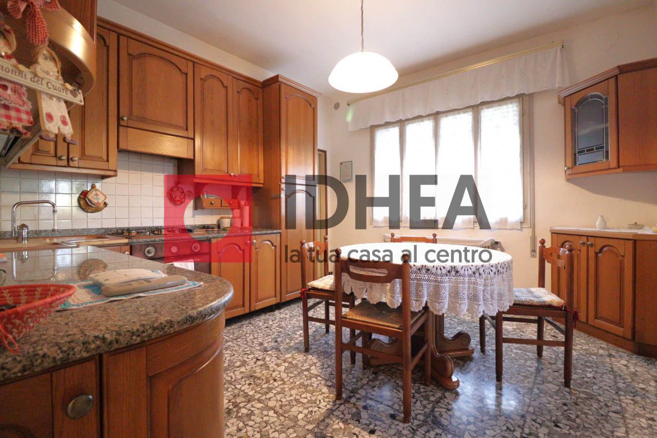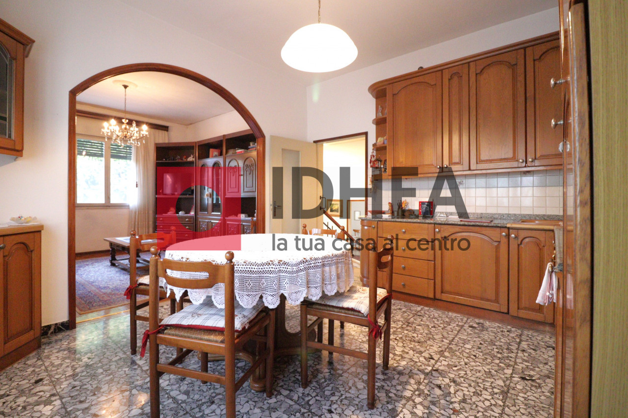 Una rampa di scale collega la cucina con il garage seminterrato di 30mq, il quale porta anche al vano caldaia e alla cantina.