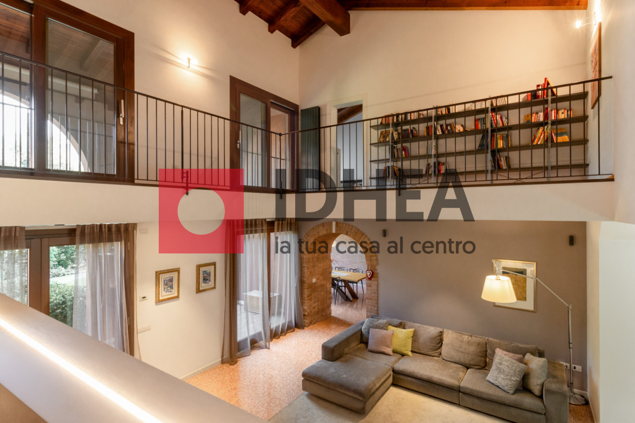 Al piano terra si apre un ampio e luminoso soggiorno di quasi 47 mq con caminetto di design(Focus), soffitti a doppia altezza e ballatoi a vista, dove la luce naturale entra generosa creando un’atmosfera calda e invitante. A fianco, una cucina abitabile di oltre 28 mq diventa il vero cuore della casa, perfetta per cucinare in famiglia o ricevere ospiti grazie alla generosa zona pranzo prospiciente il giardino. Sullo stesso piano troviamo anche una lavanderia di ben 13 mq. adeguata alle esigenze della casa (completa di doccia) con accesso all'esterno, un bagno di servizio finestrato e un grande garage di oltre 33 mq.