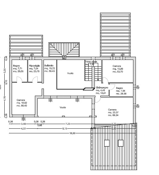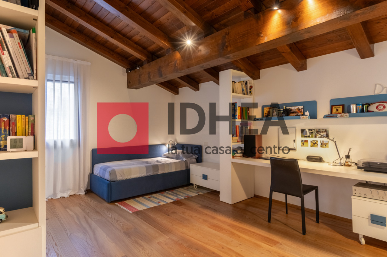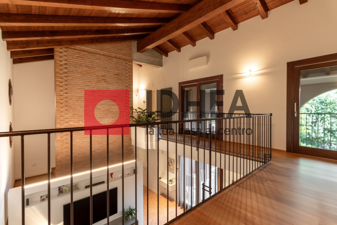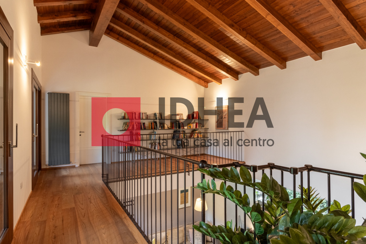 La zona notte, posta al piano superiore e cui si accede tramite scala in legno, è pensata per offrire il massimo del comfort. Tre camere matrimoniali, tutte spaziose e ben distribuite, tra cui la padronale dotata di una pratica cabina armadio e bagno privato entrambi finestrati per un complessivo di circa 33mq. Le altre due camere, anch’esse dalle metrature fuori standard (16 e 23 mq.), sono servite da un secondo bagno finestrato di 7 mq. con doccia e vasca idromassaggio. A completare il piano, troviamo dei ballatoi che regalano scorci sulla zona giorno sottostante e sul verde attorno dando una piacevole sensazione di apertura.